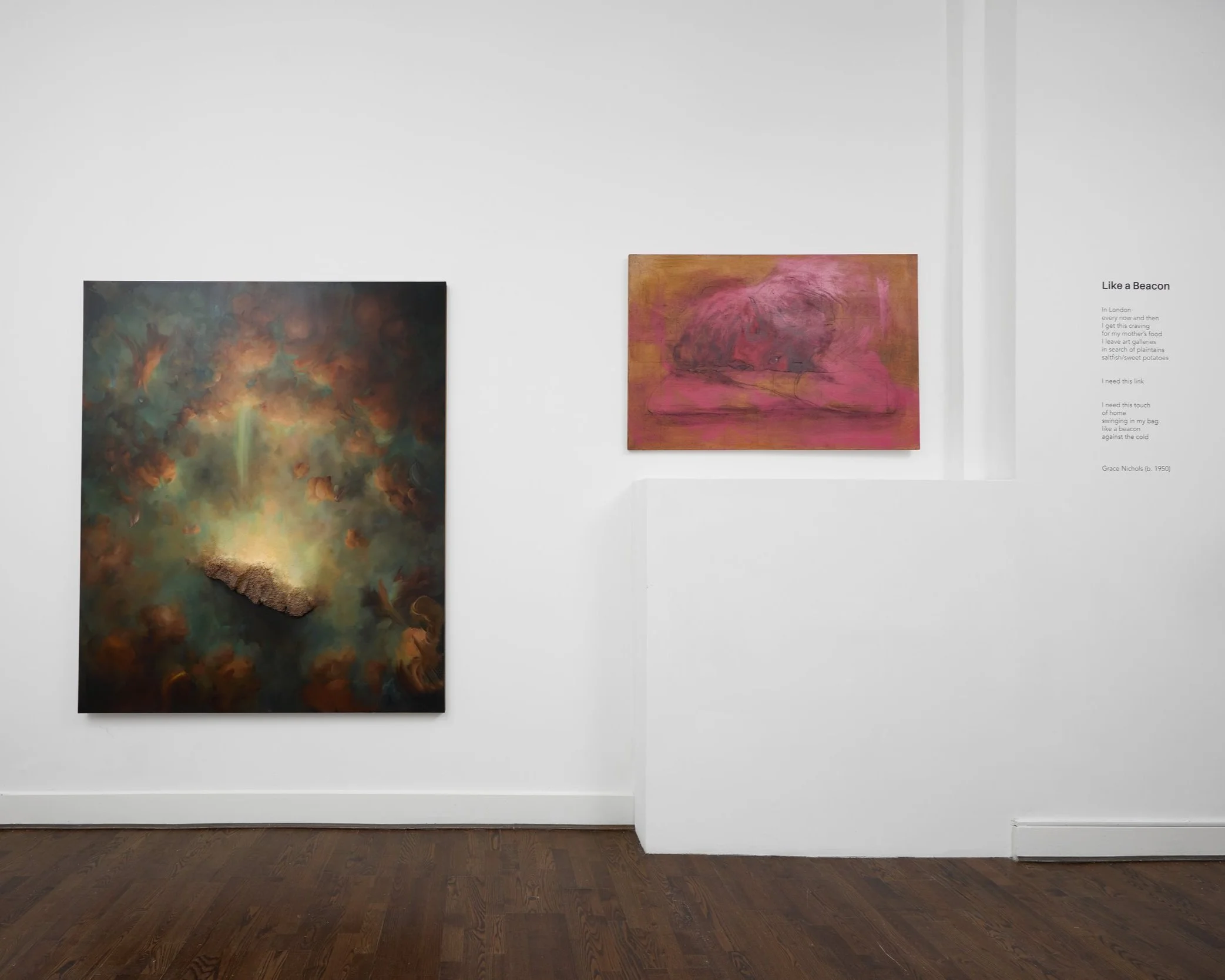 Jesse Akele’s (b. 1995) completed the MA Painting programme at the Royal College of Art in 2023. Her work is concerned with investigating the inner life of her subjects and how this is molded by experience. With subjects very much rooted in her world, Akele’s approach to painting them is a response to the qualities she has observed them radiate. She enjoys magnifying what can be perceived to be fleeting, sometimes small, moments and making them epic.